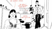 Bei Chrigel Farner sehen die Bilder allerdings nicht so lieblich aus. Wuchtig wirken die Kämpfe zwischen Menschen und Märchenwesen. Und wuchtig wirken auch die Emotionen, die Farner den Figuren ins Gesicht malt. Das gilt für die fette Saturiertheit des Königs genauso wie für die Verzweiflung, die Pippin überfällt, wenn er vor neuen gefährlichen Aufgaben steht. Das wirkt deutlich bedrohlicher, als Märchenillustrationen gemeinhin daherkommen. Und genau deshalb entfaltet der Comic „Pippin der Nichtsnutz“ einen besonderen Sog. Übrigens auch für Kinder. Meine 7-jährige Tochter liebt Pippin und seine Abenteuer.