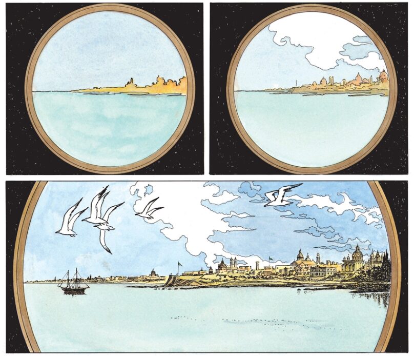 Pratt lebte ab 1949 für zehn Jahre in Buenos Aires, vielleicht ein Grund, warum er dieses ungewöhnliche, nicht sonderlich bekannte historische Setting wählte. Als Kniff lässt er die Geschichte von einem hundertjährigen Tom Browne rückblickend erzählen. Und mit Molly Malone borgte er sich eine Figur aus dem gleichnamigen berühmten irischen Volkslied (das auch in Stanley Kubricks „A Clockwork Orange“ von dem betrunkenen Obdachlosen gesungen wird, bevor ihn Alex‘ Gang verprügelt). Doch inmitten all der politischen Pläne samt Einblick in konkurrierende Freimaurerlogen spielen Tom und Molly gelegentlich nur Nebenrollen. Tom ist erst Geisel, dann Gefangener, während Molly gemeinsam mit Matthew und dem brutalen Clagg ihr Heil in der Flucht sucht, um an Land (vergeblich) auf ein besseres Leben zu hoffen.