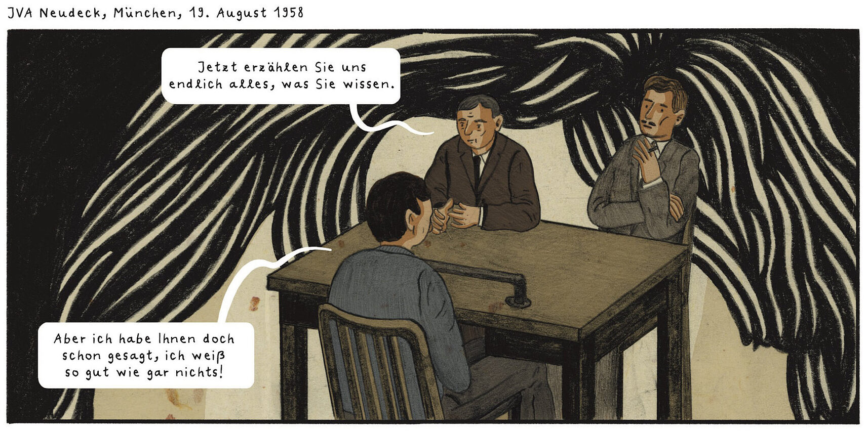Hannah Brinkmann macht mit ihrem Comic sowohl die Kontinuitäten der Verfolgungserfahrung wie auch die Integration ehemaliger NS-Funktionäre in das BRD-Justizsystem deutlich. Sie präsentiert in „Zeit heilt keine Wunden“ die Lebensläufe von Grube und Weber, bis diese 1956 aufeinandertreffen und sich zu einer Geschichte verweben, was Brinkmann auch ästhetisch reflektiert: Die Lebensgeschichte Grubes, der nach wie vor in Schulklassen als Zeitzeuge zur Aufklärung über den Nationalsozialismus auftritt, ist in warmen Farben gezeichnet, während das mit „Eine deutsche Karriere“ überschriebene Kapitel über Weber nur in Beige koloriert ist. Im Gerichtssaal, in dem die beiden Männer 1959 aufeinandertreffen, ist einzig die Figur Grube farbig zu sehen, er hebt sich ab von der Farblosigkeit der deutschen Justiz, die das Opfer der Verfolgung erneut zum Opfer macht. Auch wenn man dem Comic seine Funktion als Teil der Bildungsarbeit — er ist eine Auftragsarbeit des NS-Dokumentationszentrums München — in manchen Passagen anmerkt, bleibt er doch in seiner Ästhetik und in seiner klaren antifaschistischen Haltung ein wichtiges Beispiel der Möglichkeiten, im Comic über den Nationalsozialismus zu sprechen.