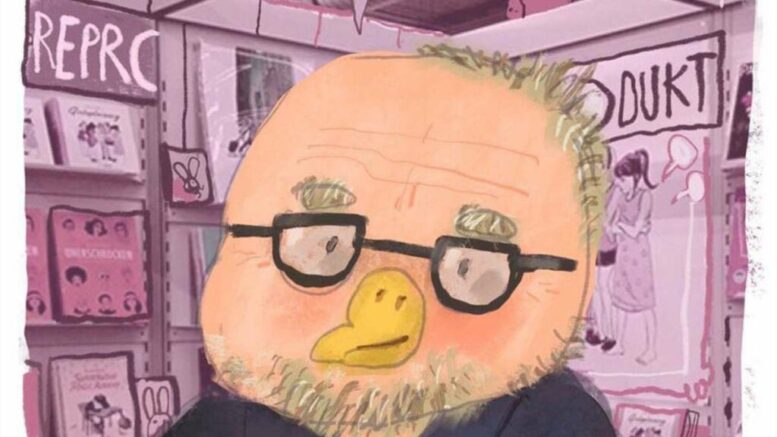 Abb. oben: Dirk Rehm, gezeichnet von Mawil / © Mawil