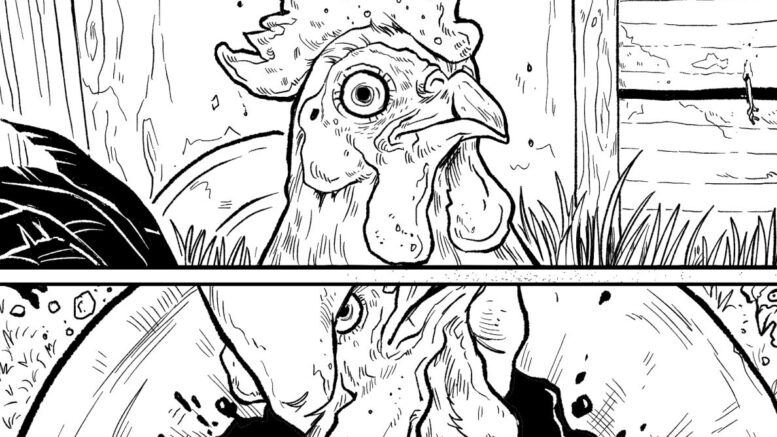 Für das grundlegende Verständnis der Handlung ist das Lesen des Anhangs mit zusätzlichen Informationen und Erklärungen nicht nötig – was absolut nichts über die erwähnte Qualität von Nielsens Expertise aussagt, sondern die Klasse der Erzählung umso mehr hervorhebt. Hier wird nämlich viel von der unheimlichen Atmosphäre ohne Worte transportiert, vor allem durch den durchdringenden Blick der Hauptfigur: ein Hahn, der einem Feuer entkommen ist, vor dem Taxi von Anding Faustino auftaucht und alsbald beim Sabong, der philippinischen Form des Hahnenkampfs, antritt. Dort zerfetzt er seine Gegner der Reihe nach und avanciert zum Champion, doch schon zuvor zeigt sich am grausamen Ende einer Katze, dass es sich bei ihm um kein gewöhnliches Federvieh handelt.