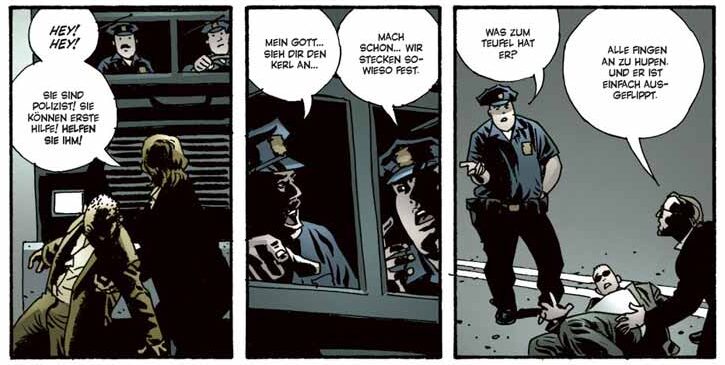 Erneuert Brubaker die Noir-Mythologie? In inhaltlicher Hinsicht nur ansatzweise, wenn er als Motivation krimineller Taten sehr alltägliche finanzielle Gründe ins Spiel bringt, etwa die Sorge um einen dementen Angehörigen. Die groß angelegte epische Verzweigung, die über die einzelnen Story Arcs hinausgeht, ist aber schon ein Meisterstück. Zudem hat er mit Sean Phillips einen Zeichner zur Seite, der seine Aufgabe nicht darin sieht, selbst groß zu glänzen, sondern primär Partner des Szenaristen zu sein. Nicht zu unterschätzen ist auch der Anteil, den Val Staples, der Kolorist, am Gelingen von „Criminal“ hat. Die gedeckten Farben, die er wählt, vermitteln ein Gefühl von Beklemmung, von Unausweichlichkeit, wie es Schwarz-Weiß nicht besser könnte.