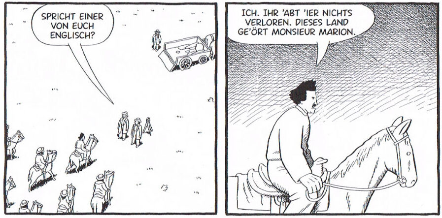 „Ich habe aus Notwehr gehandelt, die Regierung aber, verantwortungslos und wahnsinnig wie sie ist, war im Unrecht“, sagt Louis Riel in Chester Browns Comic-Biografie beim Schlussplädoyer eines gegen ihn angestrebten Prozesses wegen Hochverrats im kanadischen Regina. „Schuldig“, lautet das Urteil. Den einen seiner Zeitgenossen galt er als Freiheitskämpfer, den anderen als Verräter, heute ist die Bedeutung von Louis Riel für die kanadische Geschichte unumstritten. Chester Brown hat dem 1885 hingerichteten Riel mit seiner 2003 erschienenen Biografie (zwischen 1999 und 2003 zunächst in zehn Einzelbänden publiziert) ein Denkmal gesetzt, die erste Graphic Novel in der kanadischen Bestseller-Liste für Non-Fiction. Das ist erstaunlich, bekennt Brown doch in seinem Vorwort (das leider in der mit fast 20 Jahren Verspätung erschienenen deutschsprachigen Ausgabe fehlt), er habe eher eine Interpretation als die getreue Wiedergabe historischer Fakten abgeliefert.