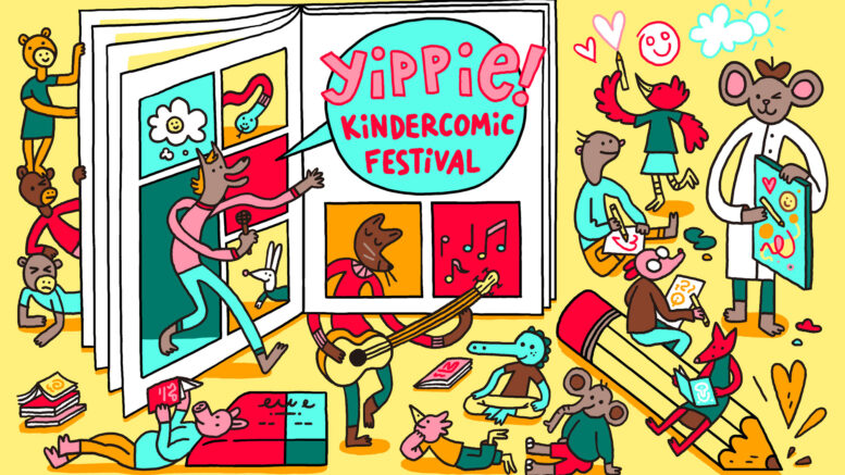 Kinder mögen gerne Comics. Sie lesen sie, sie zeichnen Comics, sie hören und sehen gerne zu, wenn andere ihre Comics vorstellen, sie machen gerne mit, wenn jemand eine schöne Comic-Idee hat. Comiczeichner*innen sind nette Leute und sie haben gute Ideen. Comiczeichner*innen sitzen oft hinter ihrem Schreibtisch und konzentrieren sich. Dann sind sie manchmal froh, wenn sie rauskommen, andere Zeichner*innen treffen und vor allem ihr Publikum. Sie zeichnen auch gerne in ihre eigenen Bücher. Yippie! bringt das alles zusammen. Kinder, die Comics mögen und Künstler*innen, die ihre Comics gerne zeigen. Einmal im Jahr in Frankfurt am Main. Yippie! besteht aus drei wichtigen Teilen: