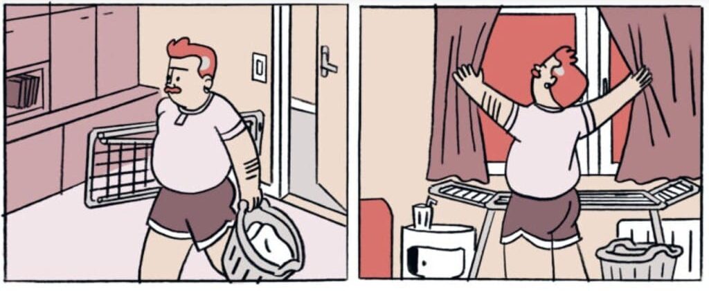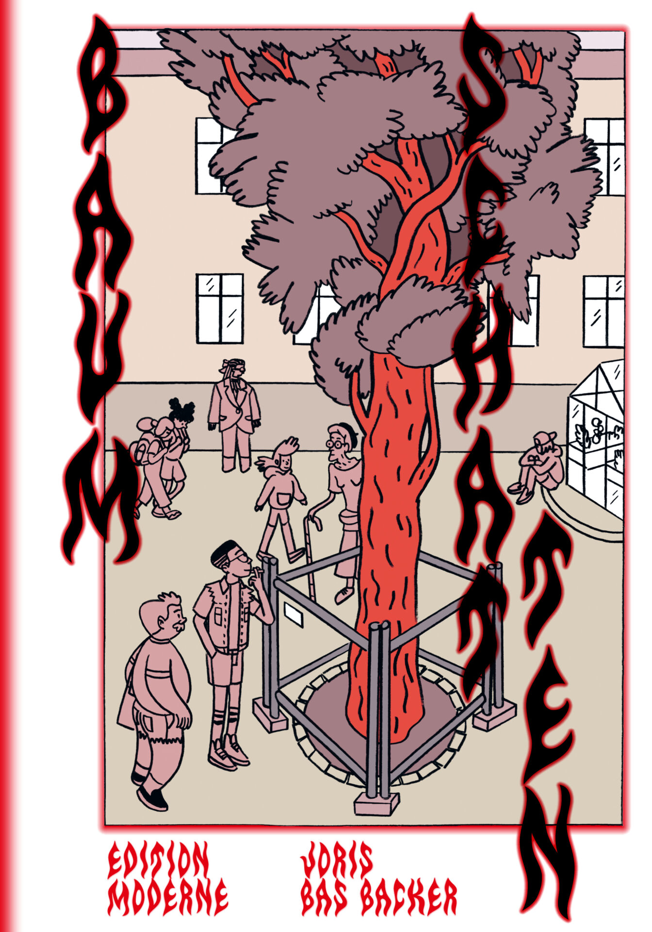 Verblüffend, dass der Comic bei all den Themen nicht erzählerisch auseinanderfällt. Das hat mit dem Stil des Comics zu tun. Joris Bas Backer zeichnet eine sehr eigene Form der klassisch-französischen Ligne Claire. Die Körper sind voluminös, und die Eiche wuchert so wild wie manche Körperbehaarung. Die klaren Linien hinterlegt er mit warmen Rot- und Brauntönen, die den ganzen Comic wie aus einem Guss wirken lassen. Die Figuren mit all ihren Macken und Vorlieben sind so authentisch gezeichnet, dass sie einem im Kiez tatsächlich über den Weg laufen könnten. „Baumschatten“ ist eine Hommage an das Leben mit seinen bitteren Seiten, den lustig-leichten – und mit all seinen Widersprüchen.